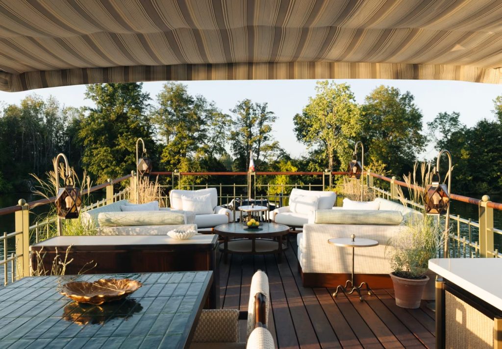 We originally thought the name of the boat was part of a Champagne house, but the boat actually gets its name from the tinted red poppies of France. They also take that theme to the interiors and the atmosphere of the Coquelicot, which is also like an extension of the picturesque countryside of France.